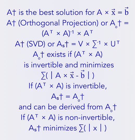 Keywords: math, learning tools, education, linear algebra, matrix, matrices, proofs, tutorial, best solution, svd, singular value decomposition, pseudoinverse, orthogonal projection, least squares, line approximation, parabola approximation, plane approximation